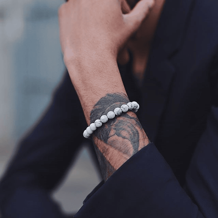 Con su aspecto suave y blanco, y sus cualidades energéticas tranquilizadoras, la Howlita no solo embellece la pulsera, sino que la dota de un valor añadido para quienes buscan la calma, la paz interior, la conexión espiritual y el equilibrio emocional en sus vidas.