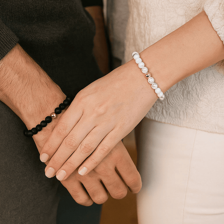 Pulseras Para Parejas Onix Mate Howlita Oro Laminado 18k